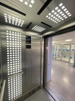 Como parte del proyecto de modernización del hospital, hemos propuesto una modificacion radical en cuanto al transporte vertical: la instalación de un ascensor de grandes dimensiones utilizando el hueco que hasta ese momento ocupaban 2 elevadores.