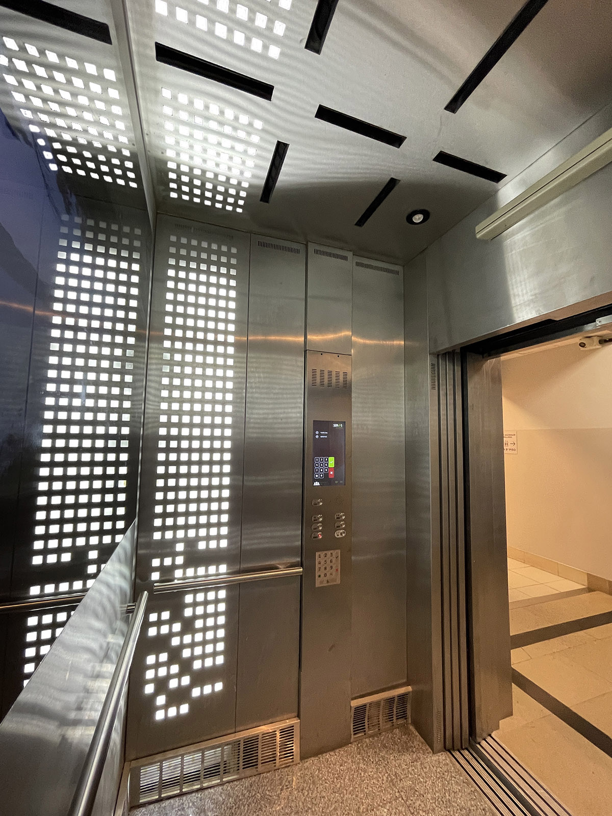 El nuevo ascensor incorpora una estética moderna y equipamiento de última generación, incluyendo: Modelo Heavy Duty, capacidad 18 personas, 1350 Kg, Performance 2 m/s Cabina Light Line. Motorización Gearless 11 paradas Video Mirror con información interactiva permanente Botonera antivandálica + botonera Touchless Equipamiento sanitizante