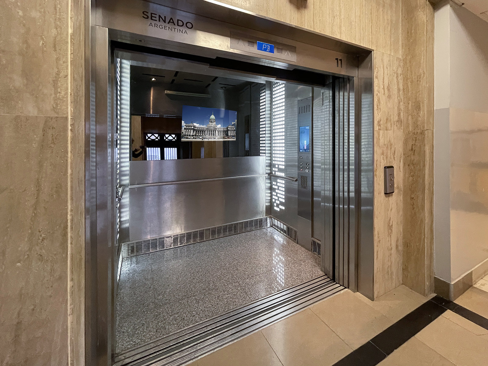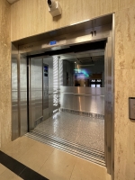 Para instalar el nuevo equipo fue necesario desmontar los ascensores existentes y llevar a cabo una obra civil integral, reformulando los palieres que ahora cuentan con puertas automáticas de tres hojas.