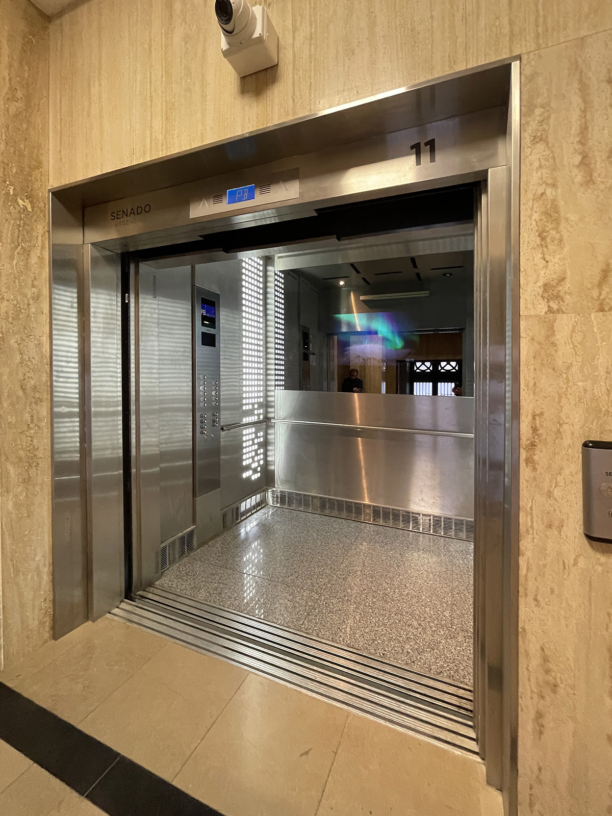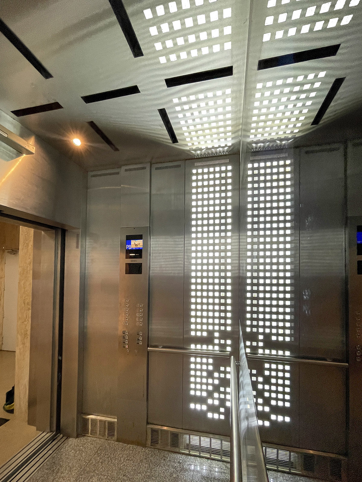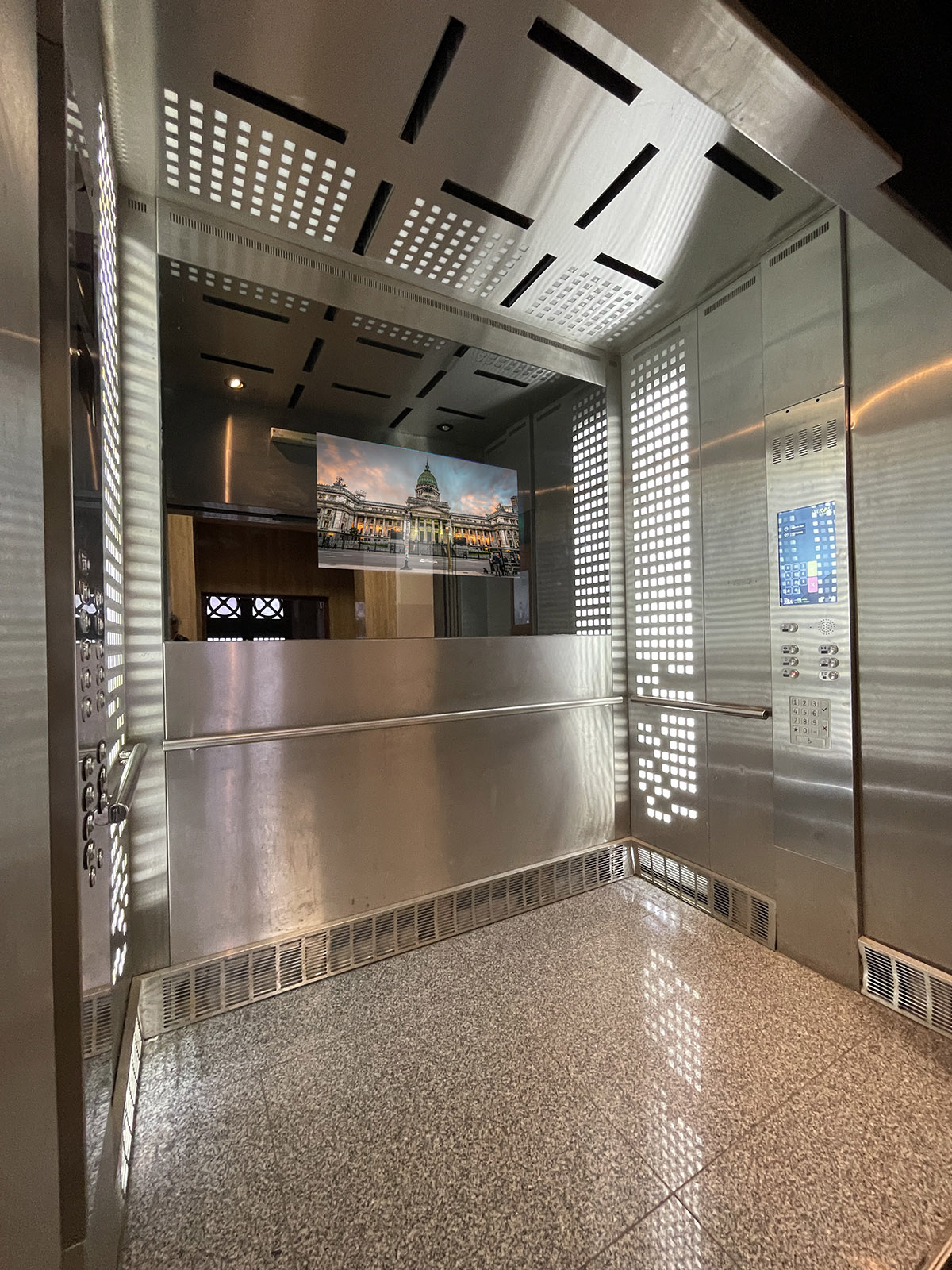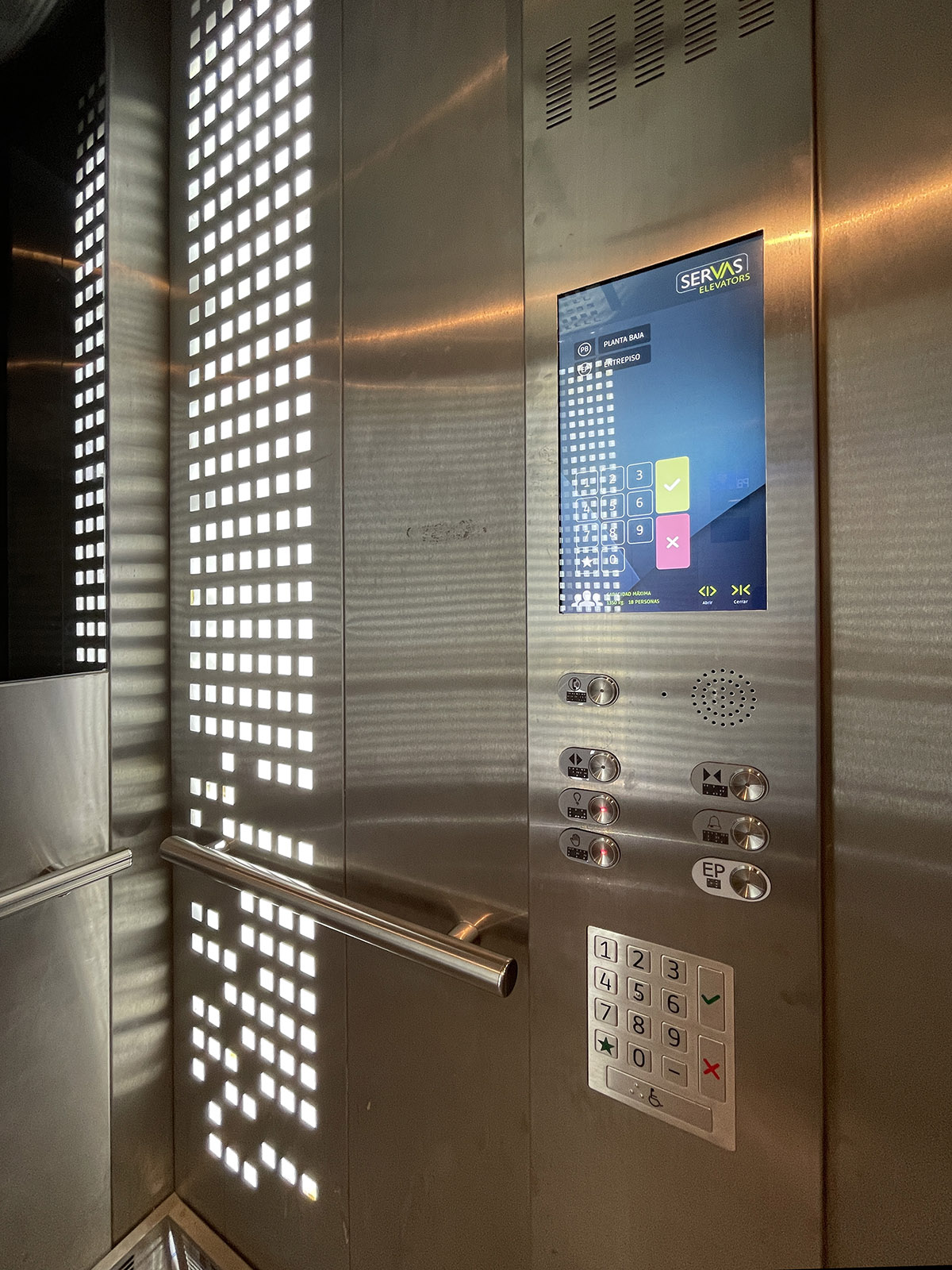 El nuevo ascensor incorpora una estética moderna y equipamiento de última generación, incluyendo: Modelo Heavy Duty, capacidad 18 personas, 1350 Kg, Performance 2 m/s Cabina Light Line. Motorización Gearless 11 paradas Video Mirror con información interactiva permanente Botonera antivandálica + botonera Touchless Equipamiento sanitizante