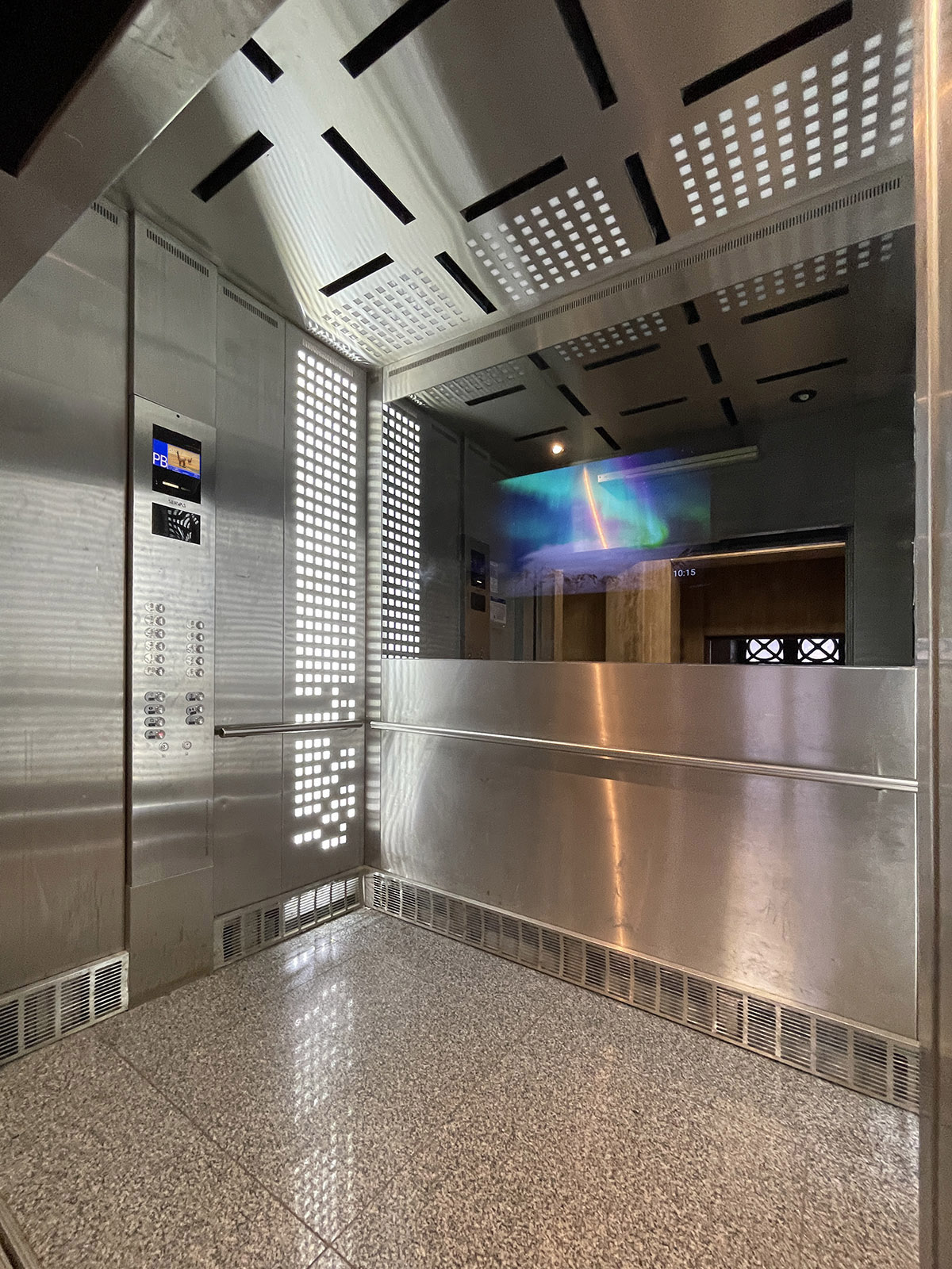 El Video Mirror es una plataforma multimedia que brinda información y entretenimiento a los pasajeros durante el viaje en ascensor. Es ideal para hoteles y edificios corporativos, ya que puede comunicar información en tiempo real, pudiendo incorporarse información sobre los mercados, cotización de monedas, estado del clima e información diaria o institucional.